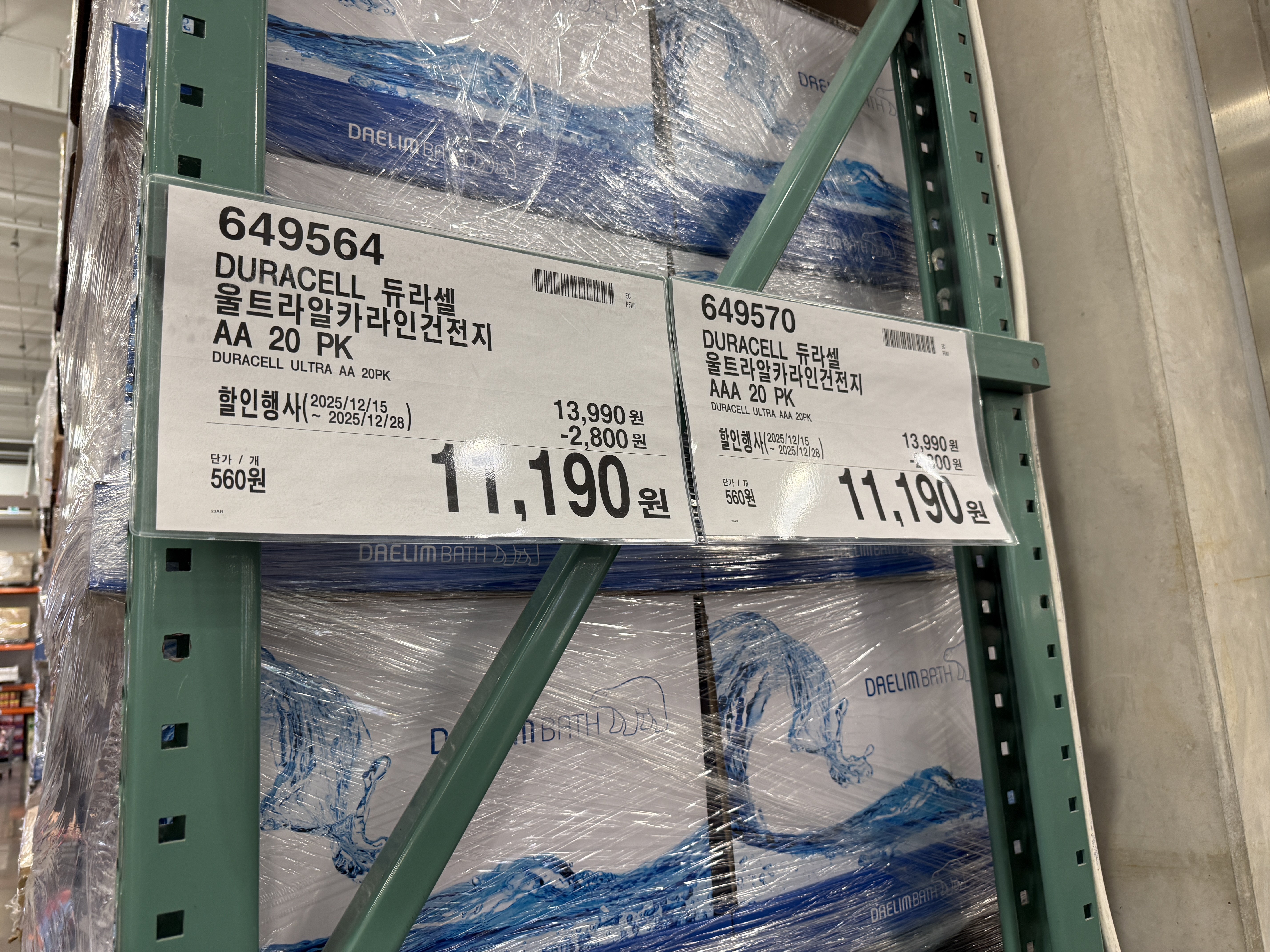 할인중이던 듀라셀 알카라인 건전지를 구매했다.